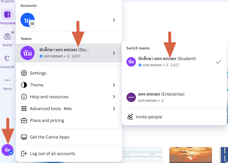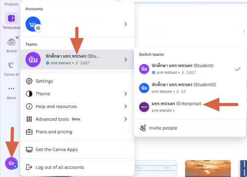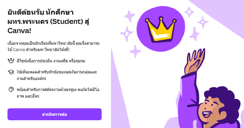 • ผู้ใช้งานจะยังสามารถใช้โปรแกรม Canva ได้เหมือนเดิน แต่จะย้ายไปอยู่ทีม Student ให้ถูกต้องตามสิทธิ์การใช้งาน