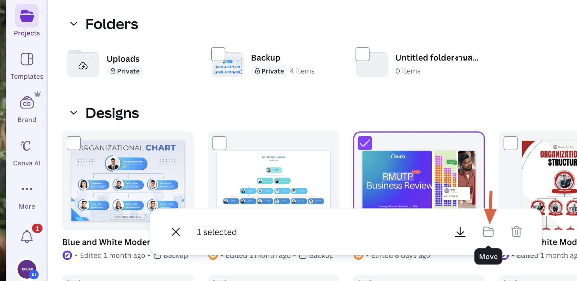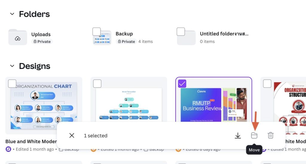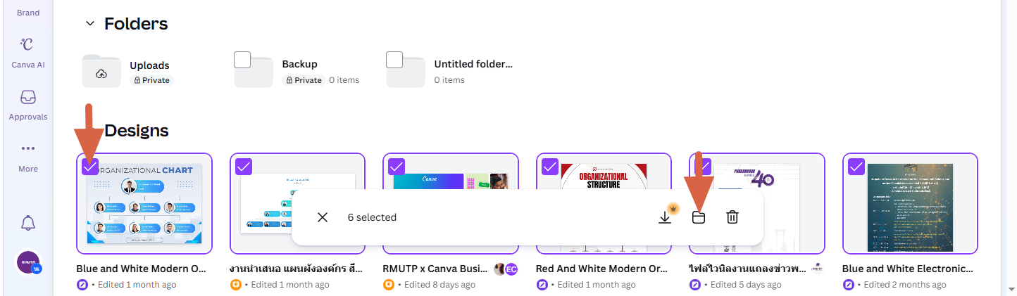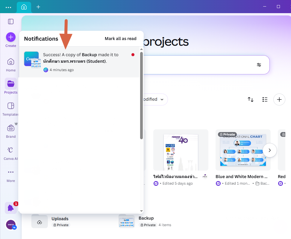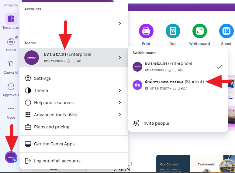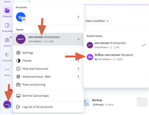 เนื่องจากบริษัท Canva ได้ปรับสิทธิ์การใช้งานโปรแกรม ทำให้ผู้ใช้งาน Canva ของมหาวิทยาลัย บางส่วนจำเป็นต้องทำการ ย้ายผลงานของตนเองจาก Team Enterprise ไปยัง Team Student เพื่อให้ถูกต้องตามสิทธิ์การใช้งาน