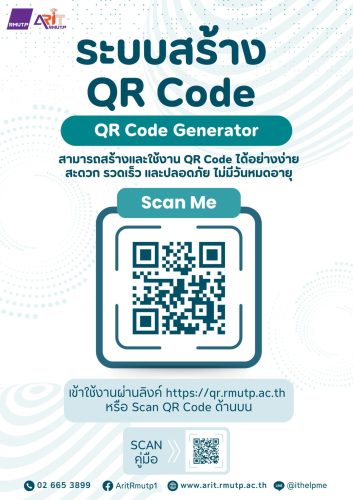 ขอประชาสัมพันธ์ ระบบสร้าง QR Code สามารถสร้างและใช้งานQR Code ได้อย่างง่าย สะดวก รวดเร็ว และปลอดภัย ไม่มีวันหมดอายุ เข้าใช้งานได้ที่ https://qr.rmutp.ac.th/ พร้อมให้บริการแล้ววันนี้ เพื่อความสะดวกสบายและความมั่นใจในทุกการใช้งานของคุณ!