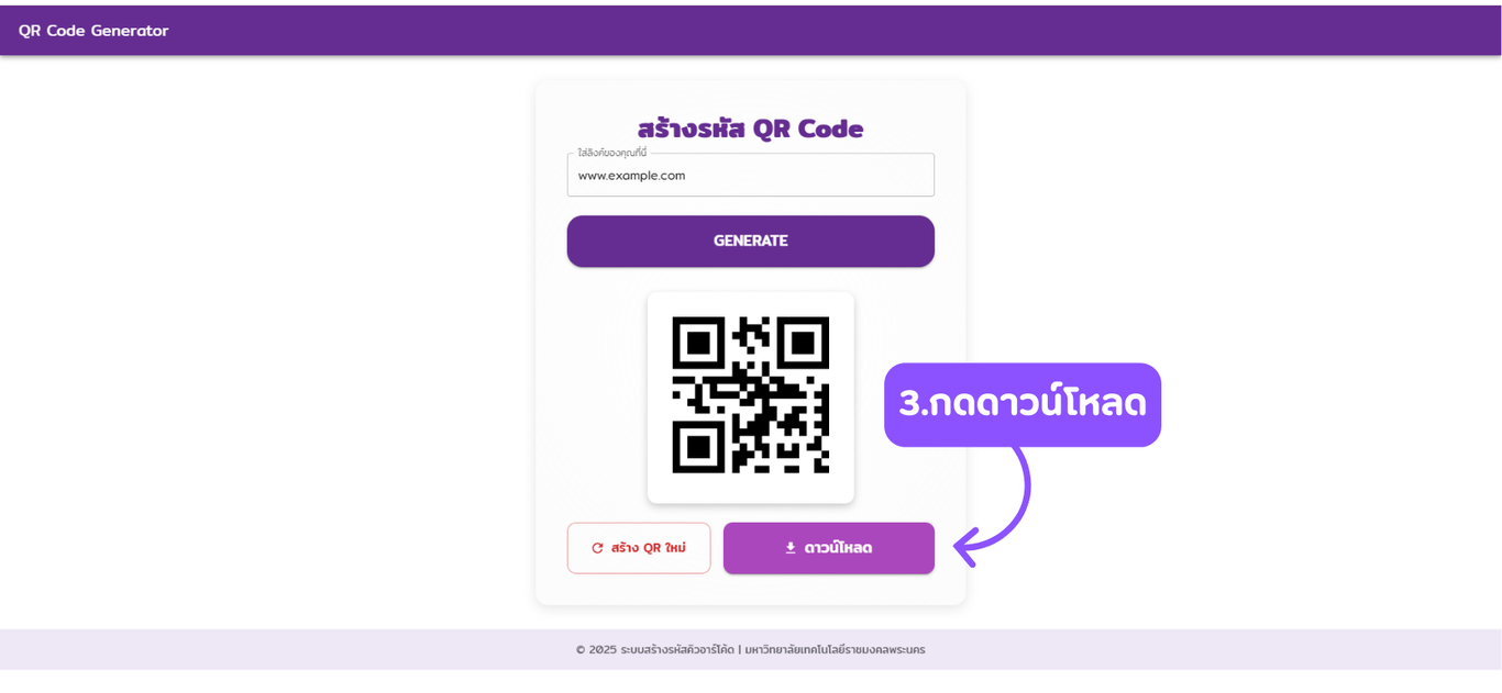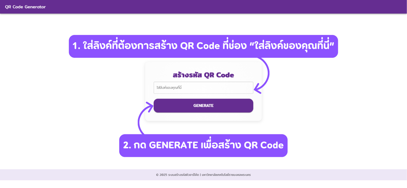 เข้าใช้งานผ่านลิงค์ https://qr.rmutp.ac.th/