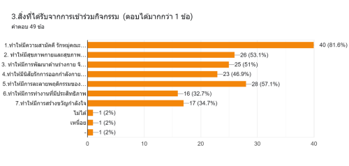 เป้าหมายผู้เข้าร่วมโครงการ 50 คน มีผู้เข้าร่วมเข้าโครงการทั้งสิ้น 49 คน คิดเป็นร้อยละ 98