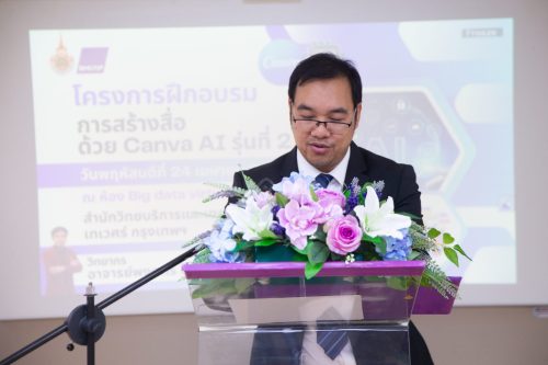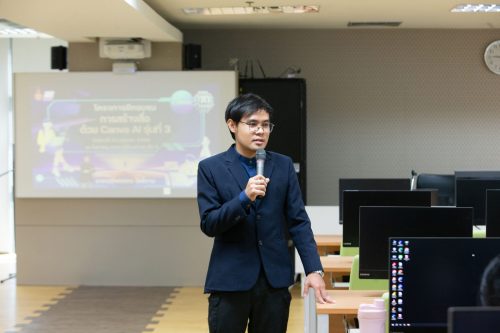 สวส. จัดโครงการฝึกอบรมโครงการฝึกอบรมการสร้างสื่อด้วย Canva AI เพื่อให้บุคลากรสายวิชาการและสายสนับสนุน สามารถออกแบบและสร้างสรรค์งานด้านกราฟิกเพื่อการเรียนการสอนให้มีความน่าสนใจยิ่งขึ้น และยังสามารถนำไปใช้ในด้านการประชาสัมพันธ์ของคณะ/หน่วยงานได้อย่างถูกต้องเหมาะสม และมีประสิทธิภาพ