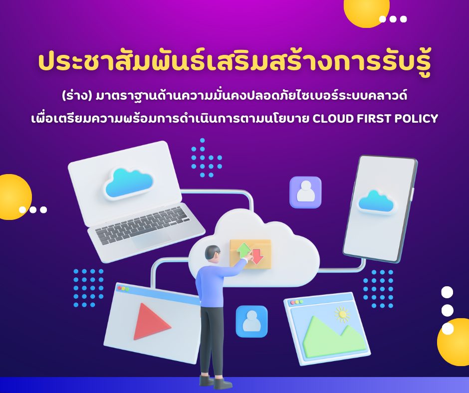 ประชาสัมพันธ์เสริมสร้างการรับรู้ (ร่าง) มาตรฐานด้านความมั่นคงปลอดภัยไซเบอร์ระบบคลาวด์ เพื่อเตรียมความพร้อมการดำเนินการตามนโยบาย Cloud First Policy