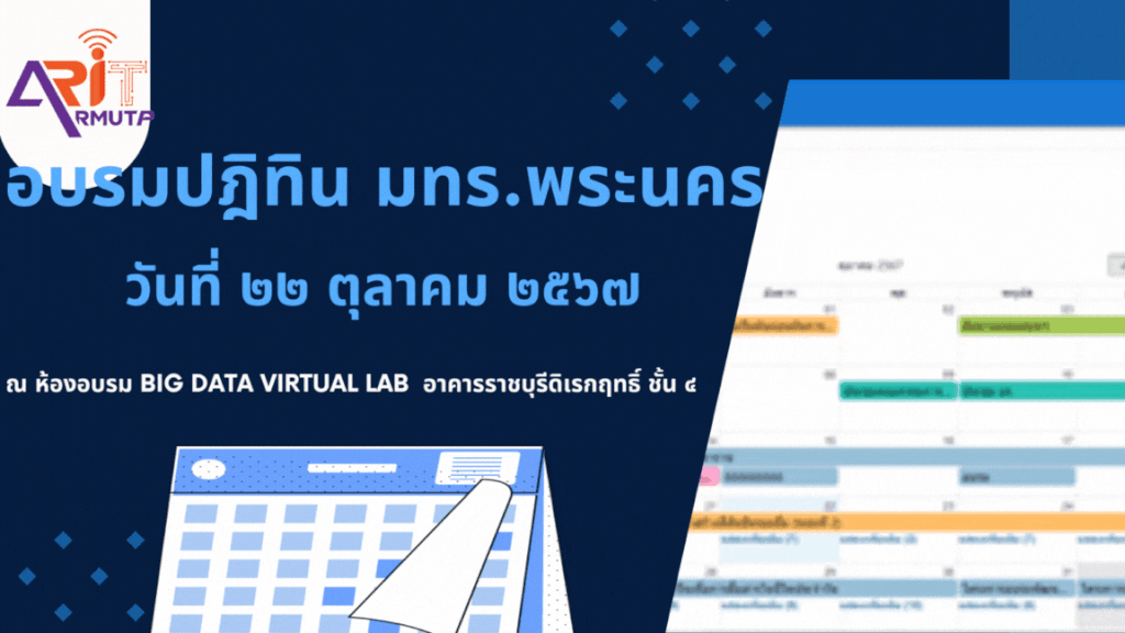จัดอบรมการใช้ปฎิทินกลาง มหาวิทยาลัยเทคโนโลยีราชมงคลพระนคร ณ ห้องอบรม Big Data Virtual Lab ชั้น4 เวลา ๑๓.๓๐ น.