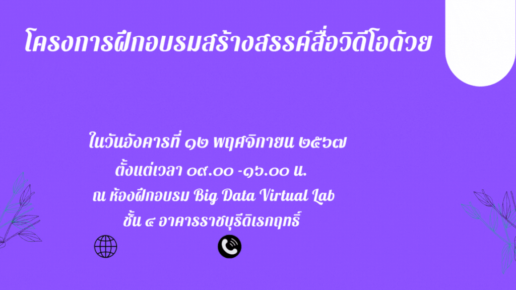 โครงการฝึกอบรมสร้างสรรค์สื่อวิดีโอด้วย CapCut ณ ห้องฝึกอบรม Big Data Virtual Lab ชั้น 4 อาคารราชบุรีดิเรกฤทธิ์