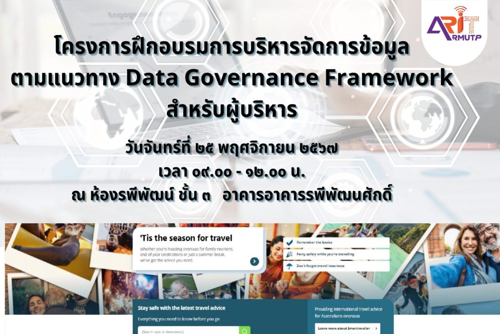 วันที่ 25 พฤศจิกายน 2567  ชั้น 3 ห้องประชุมรพีพัฒน อาคารรพีพัฒนศักดิ์ สำนักวิทยบริการและเทคโนโลยีสารสนเทศ จัดโครงการฝึกอบรมโครงการการบริหารจัดการข้อมูลตามแนวทาง Data Governance Framework สำหรับผู้บริหาร  เพื่อให้ผู้บริหารมีความรู้ความเข้าใจเกี่ยวกับแนวทางกรอบการกำกับดูแลข้อมูล (Data Governance Framework) และนำไปประยุกต์ใช้ให้เกิดการบริหารจัดการข้อมูลอย่างมีประสิทธิภาพ เวลา  9.00 – 12.00