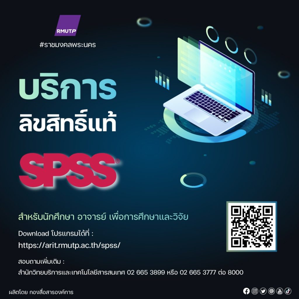 สำนักวิทยบริการและเทคโนโลยีสารสนเทศ มทร.พระนคร เปิดให้บริการโปรแกรม SPSS 30 license แท้ ตรวจสอบคู่มือการใช้งานพร้อมดาวน์โหลดได้ที่ https://arit.rmutp.ac.th/2568/spss