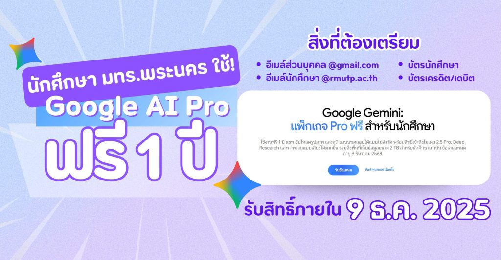 Google AI Pro ฟรี สำหรับนักศึกษา มทร.พระนคร