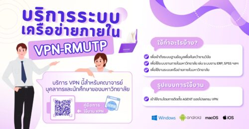ในการนี้ สำนักวิทยบริการและเทคโนโลยีสารสนเทศ จึงได้จัดทำคู่มือการติดตั้งและใช้งานระบบ VPN เวอร์ชันใหม่ โดยมีรายละเอียดเบื้องต้นตามคู่มือดังต่อไปนี้